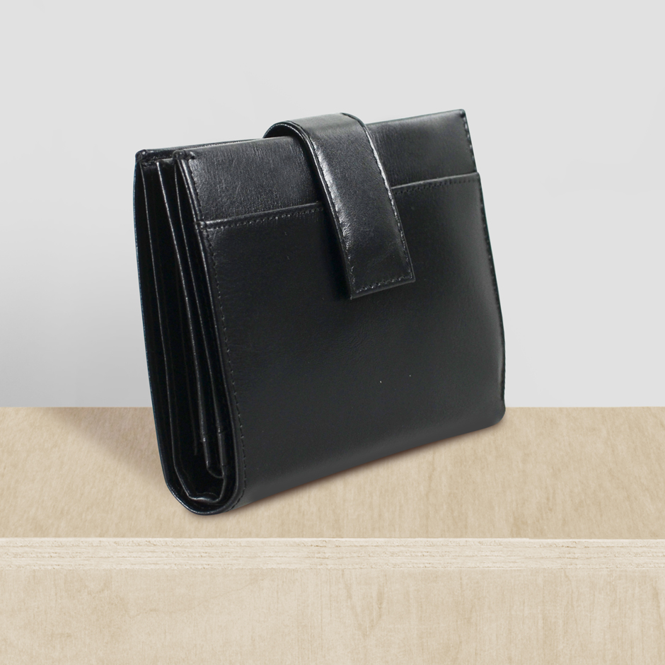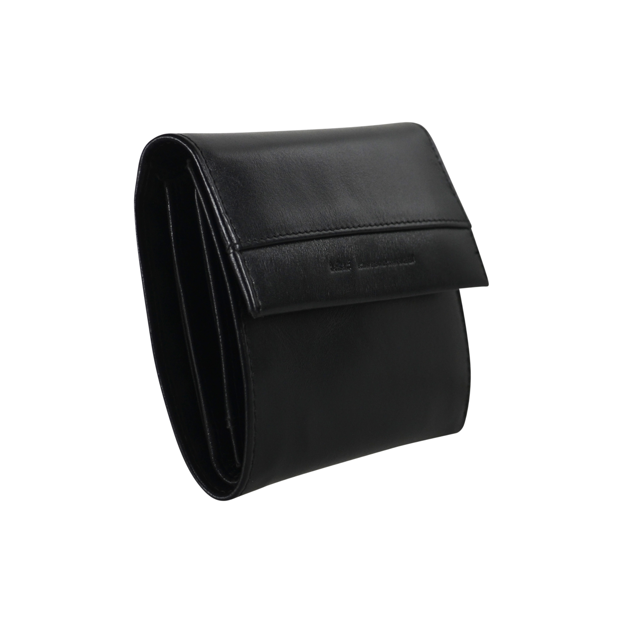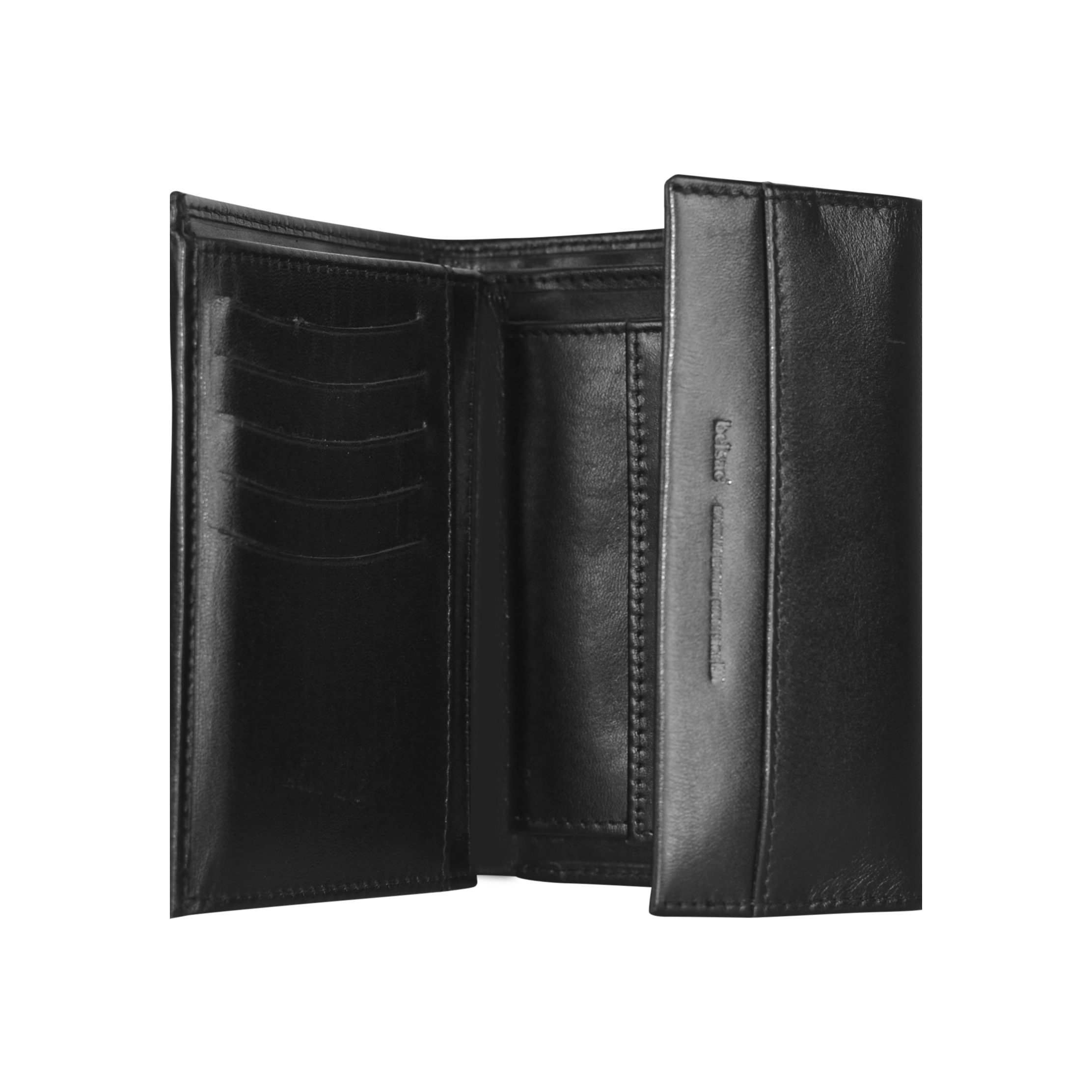 Belsac trefløjet sort pung i glat skind med plads til kort og mønter