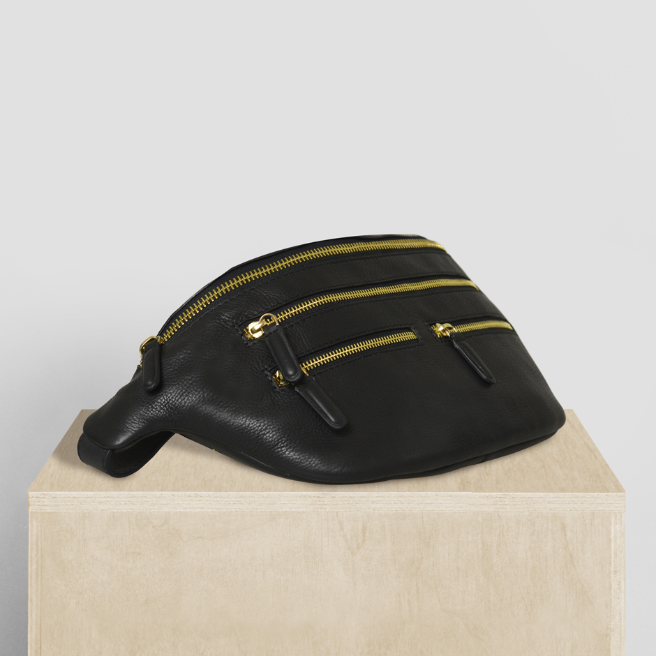 Odine, Belsac sort bæltetaske i skind med mange gode rum