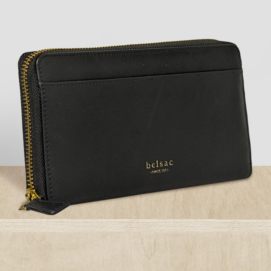 Belsac stor pung i taupe mat skind med lynlåsrum til kort og kontanter samt et udvendigt rum
