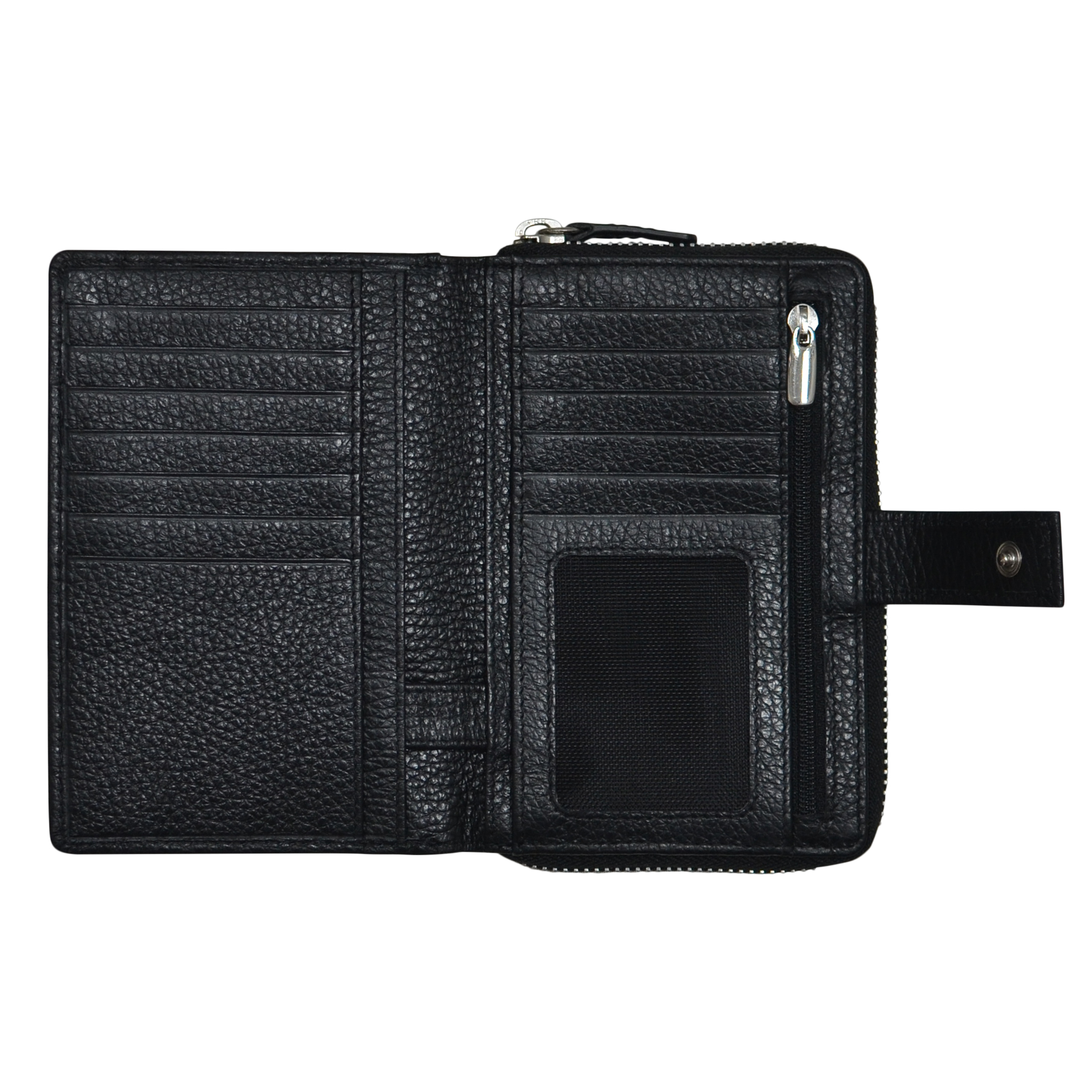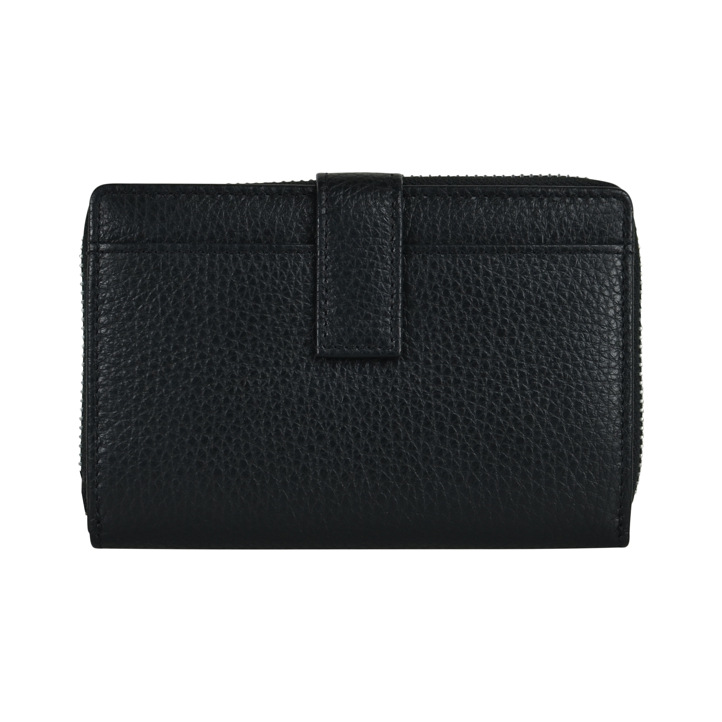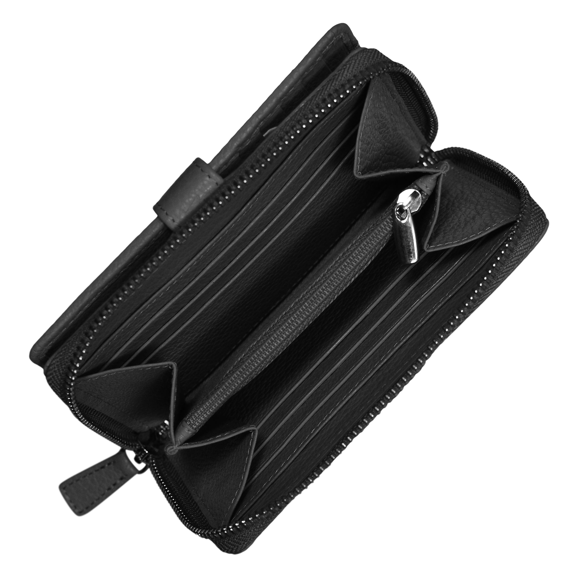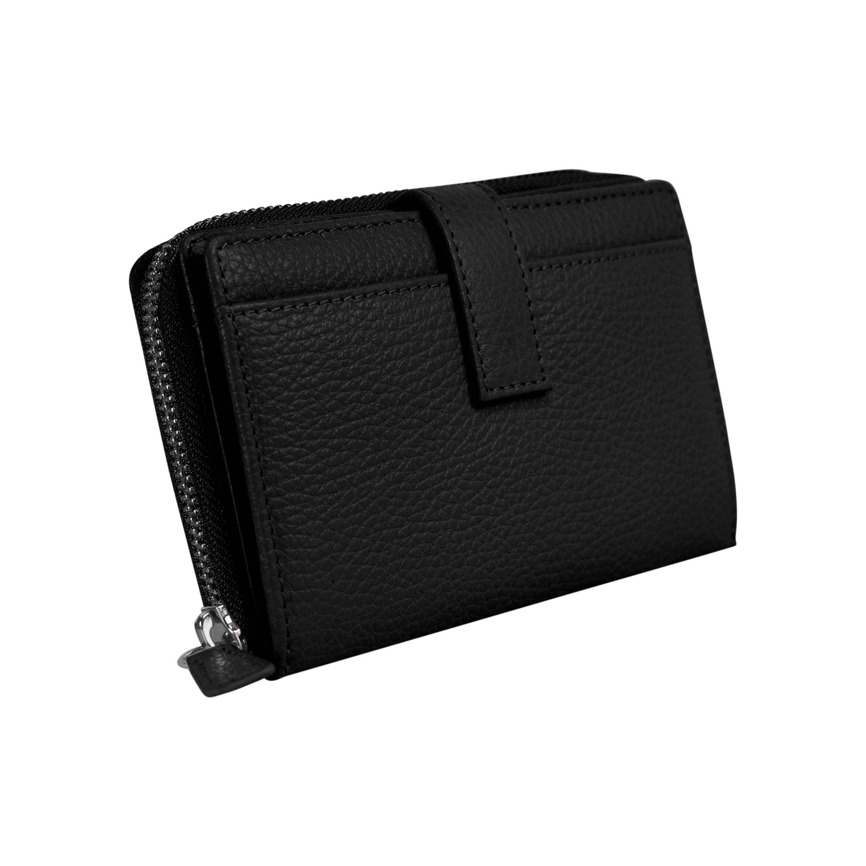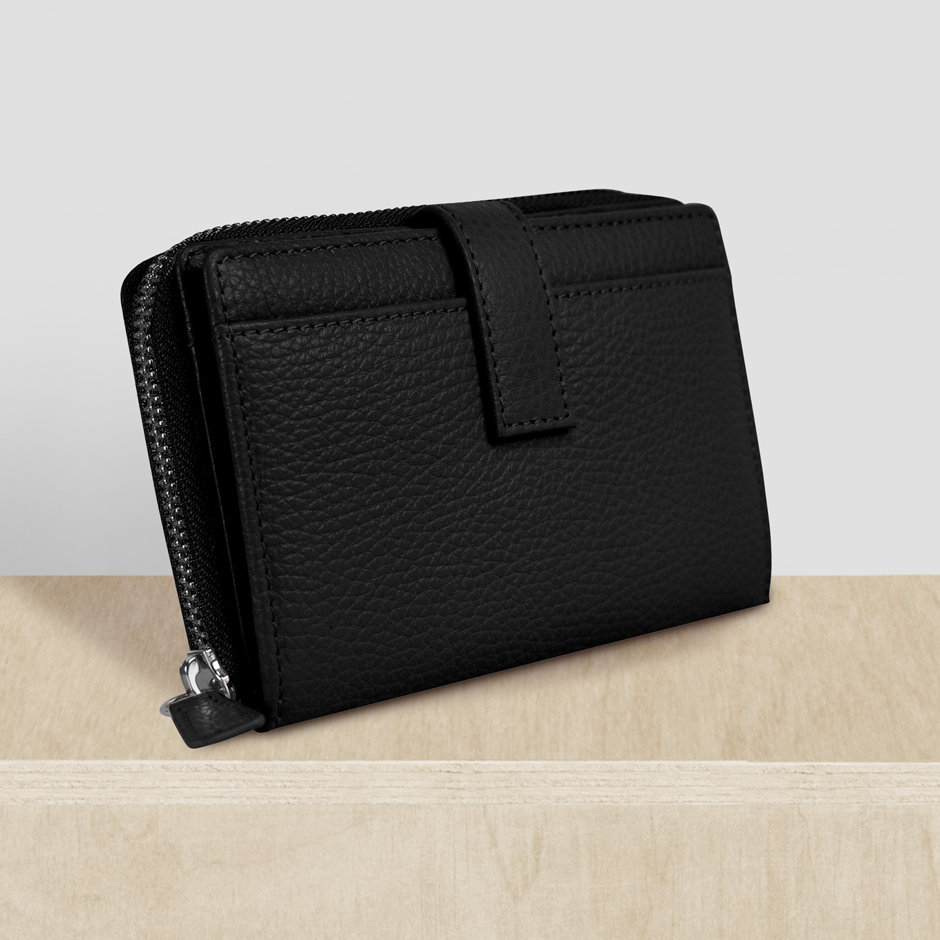 Belsac pung i sort skind med lynlås til mønter og plads til mange kort